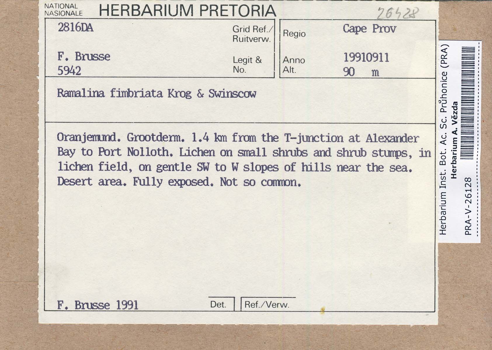 - Deposited in parcel no. 61 Ramalina A-F