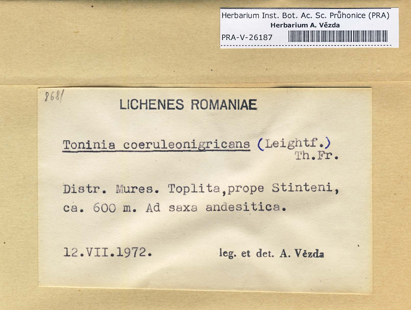 - Deposited in parcel no.27 Toninia A-C