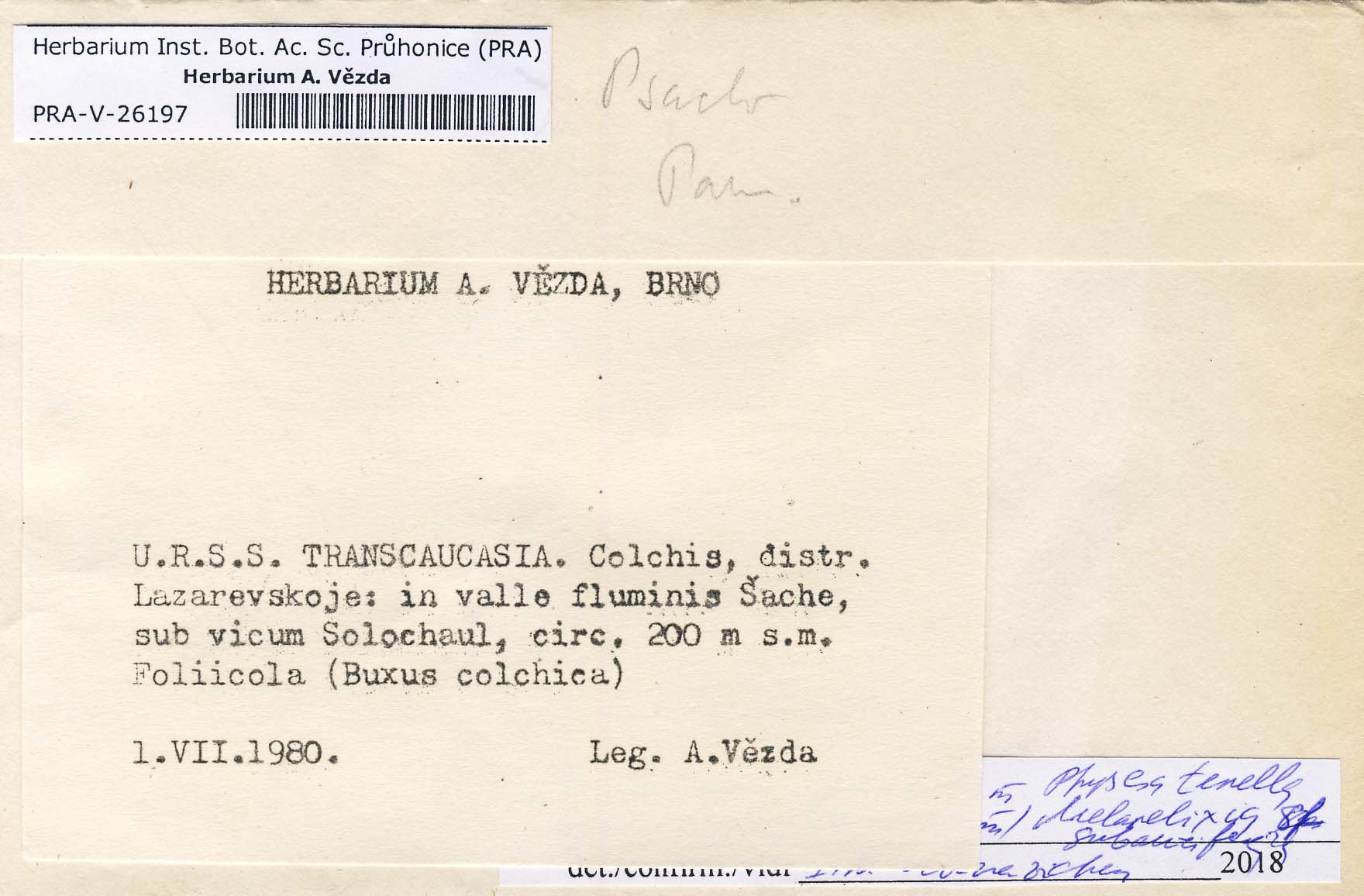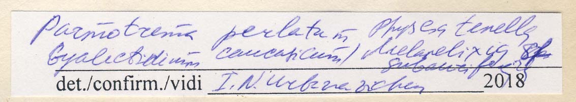 - Mixed sheet: Parmotrema perlatum and Gyalectidium caucasicum and Physcia tenella and Melanelixia subaurifera
