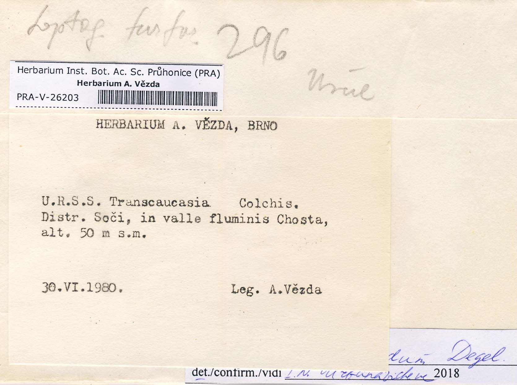 - Deposited Lichenes foliicoli: Collemataceae, Nephromataceae, Parmeliaceae, Physciaceae, Peltigeraceae