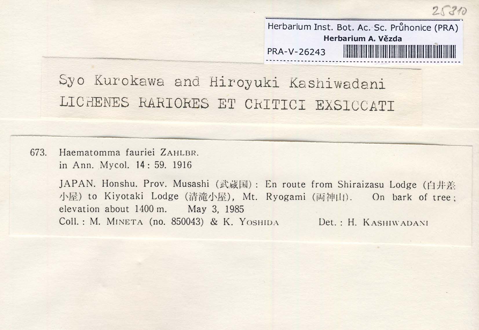 - Kurokawa & Kashiwadani, Lich. Rar. Crit. Exs.