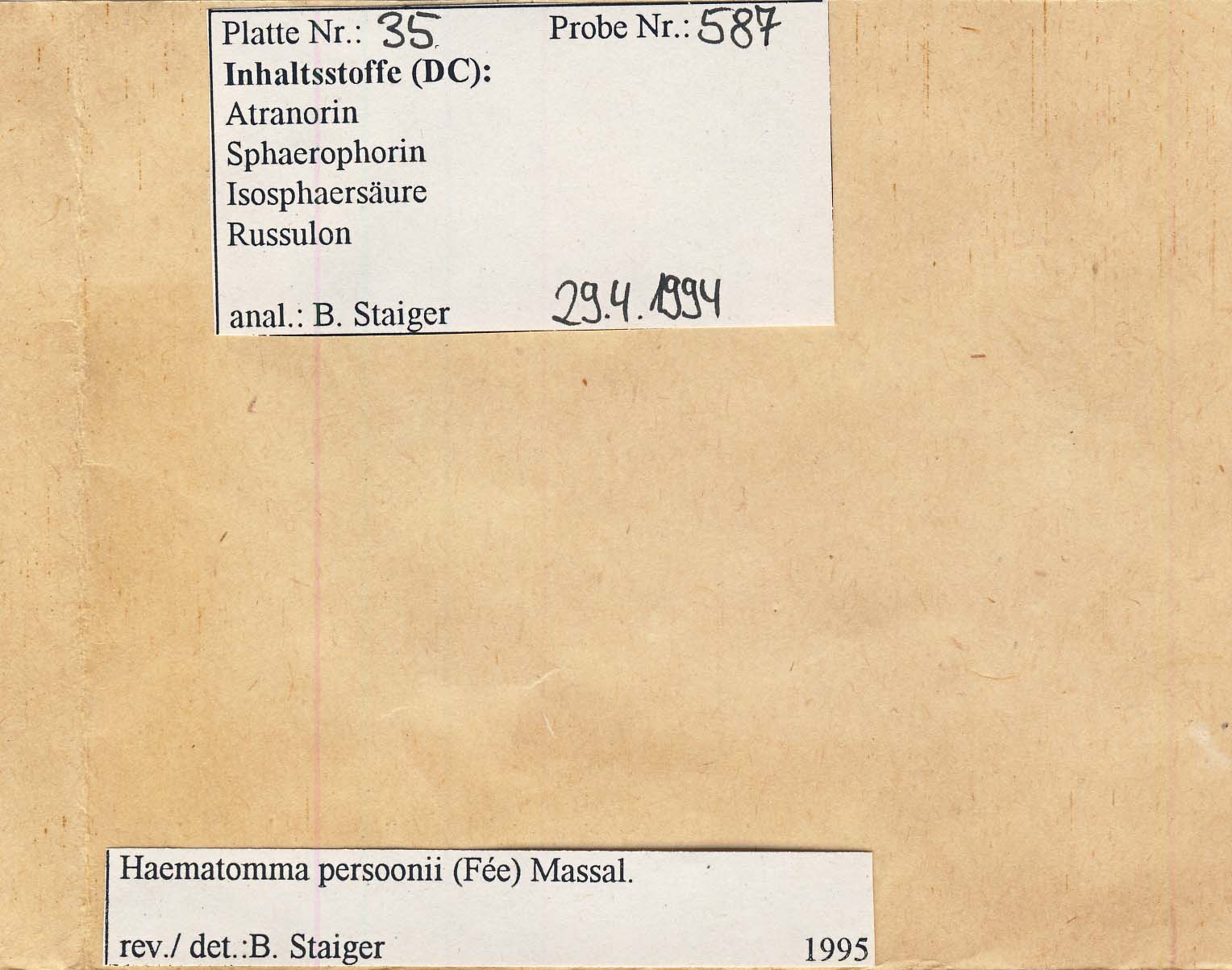 - Deposited in parcel no. 50 Haematomma