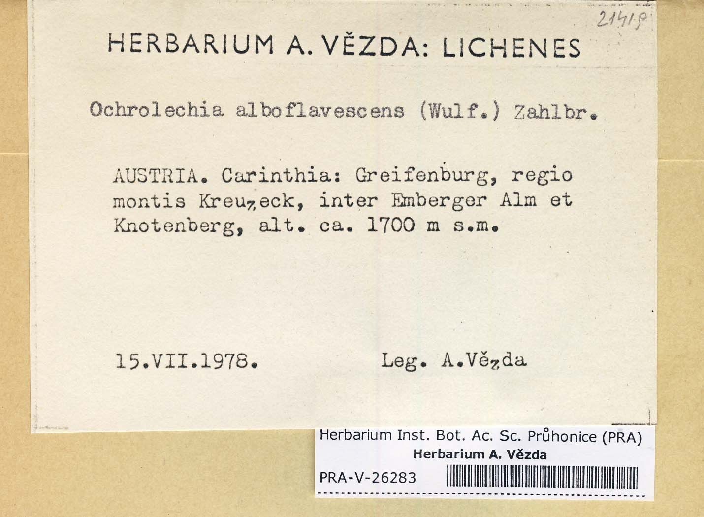 - Deposited in parcel no. 51 Ochrolechia A-O