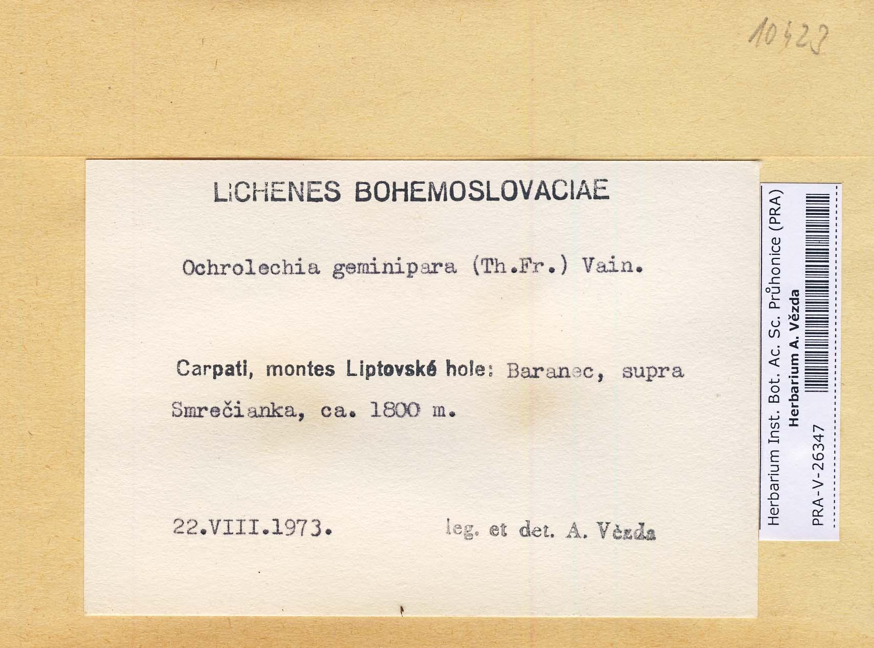 - Deposited in parcel no. 51 Ochrolechia A-O