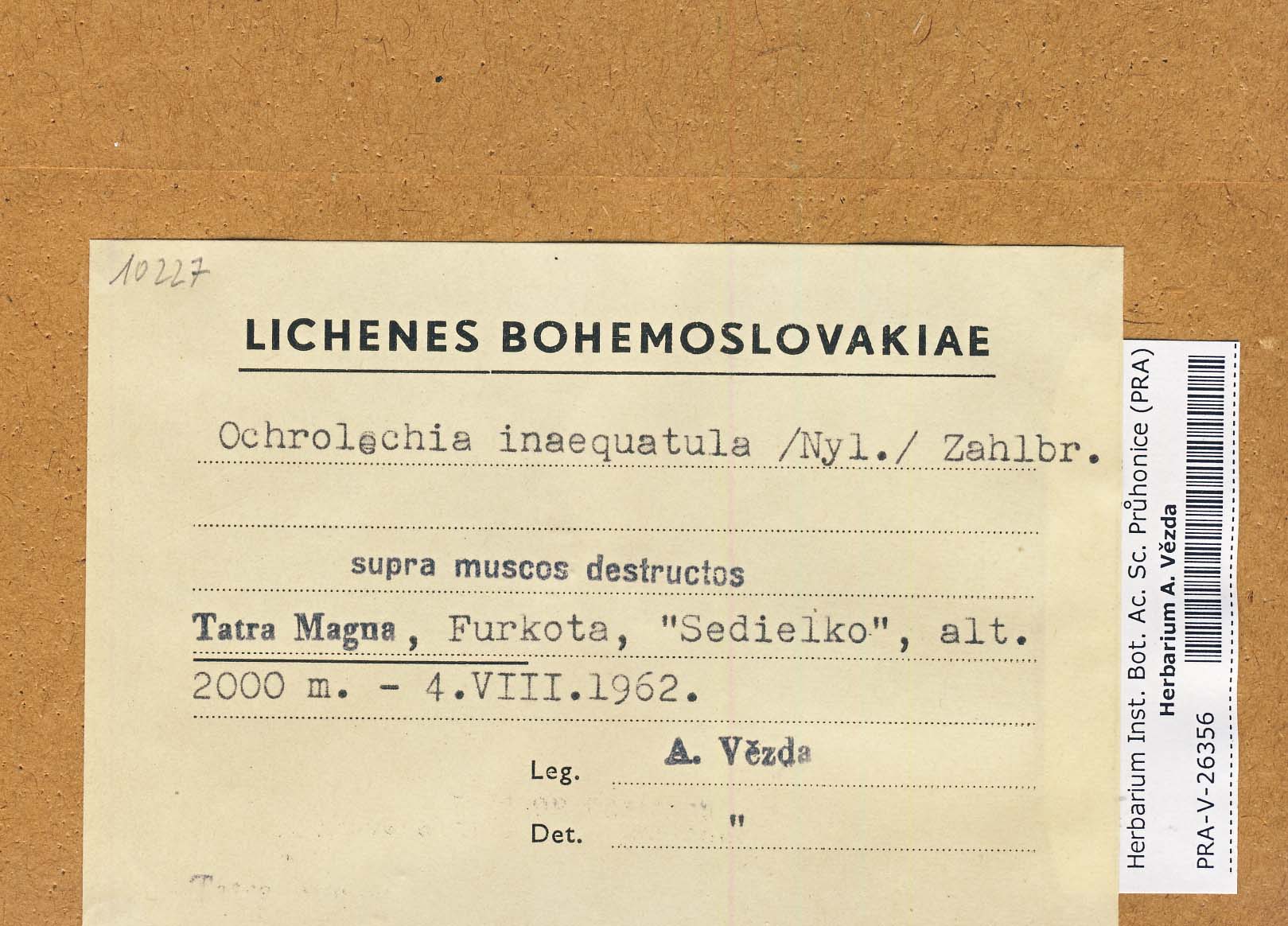- Deposited in parcel no. 51 Ochrolechia A-O