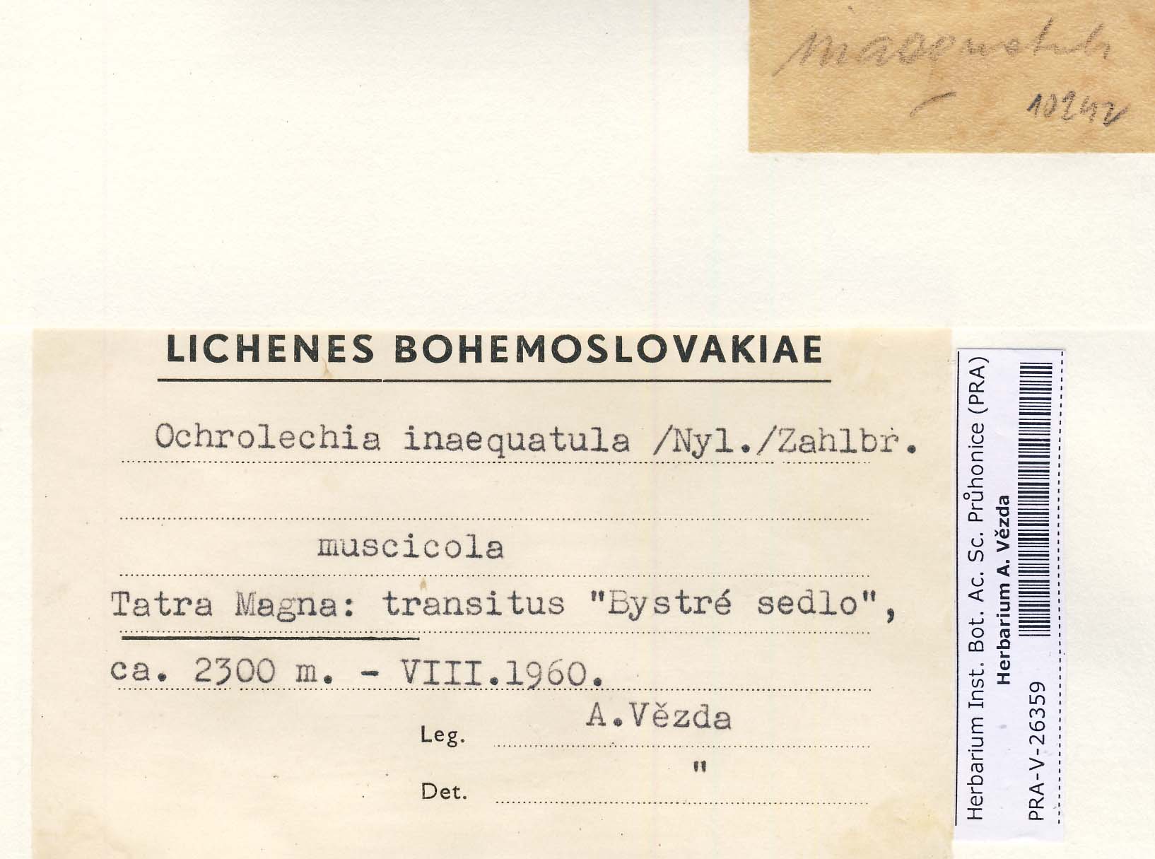 - Deposited in parcel no. 51 Ochrolechia A-O