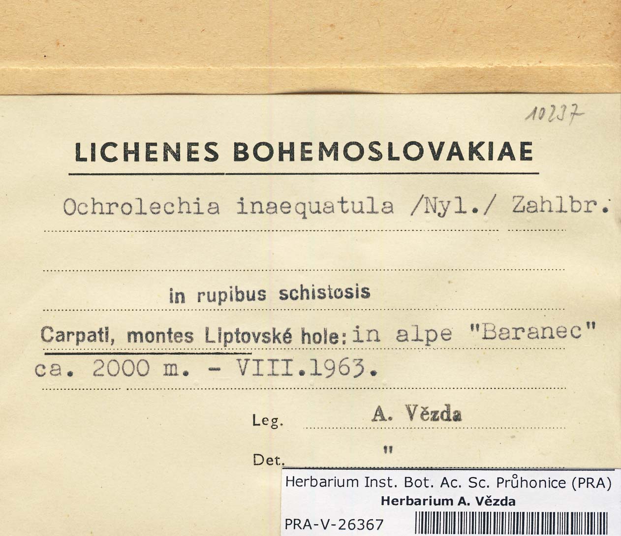 - Deposited in parcel no. 51 Ochrolechia A-O