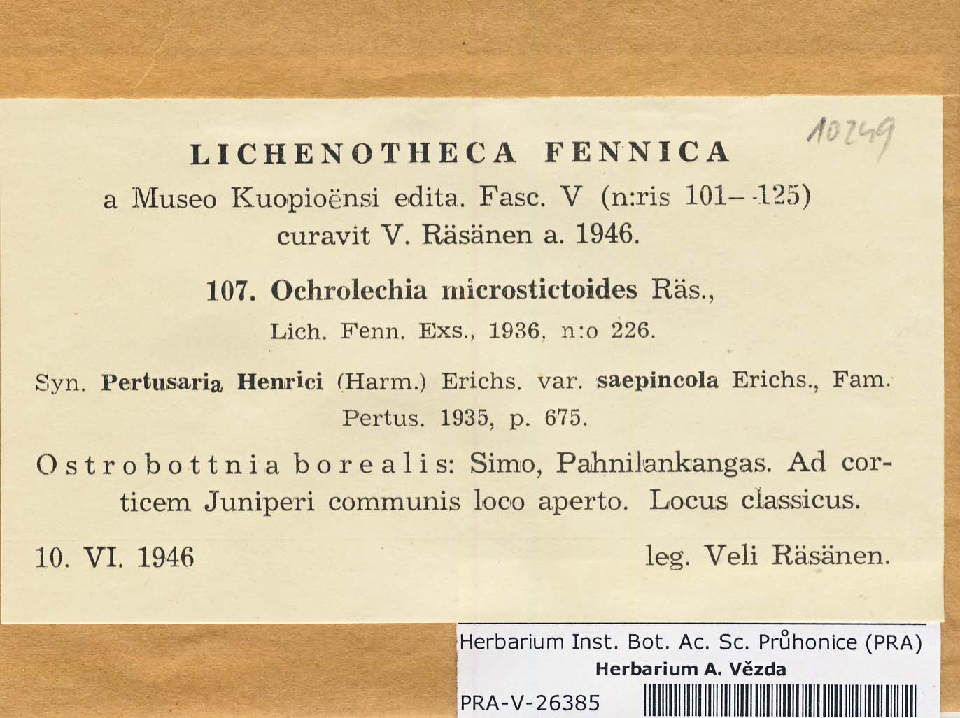 - Deposited in parcel no. 51 Ochrolechia A-O