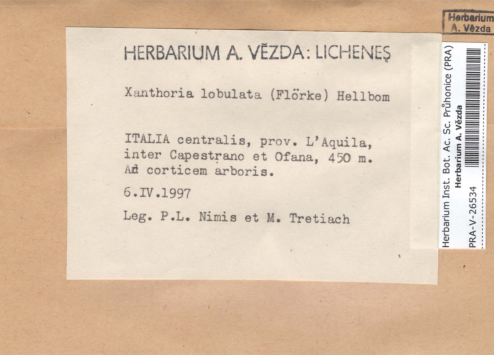 - Deposited in parcel no. 54 Mixodictyon, Xanthoria