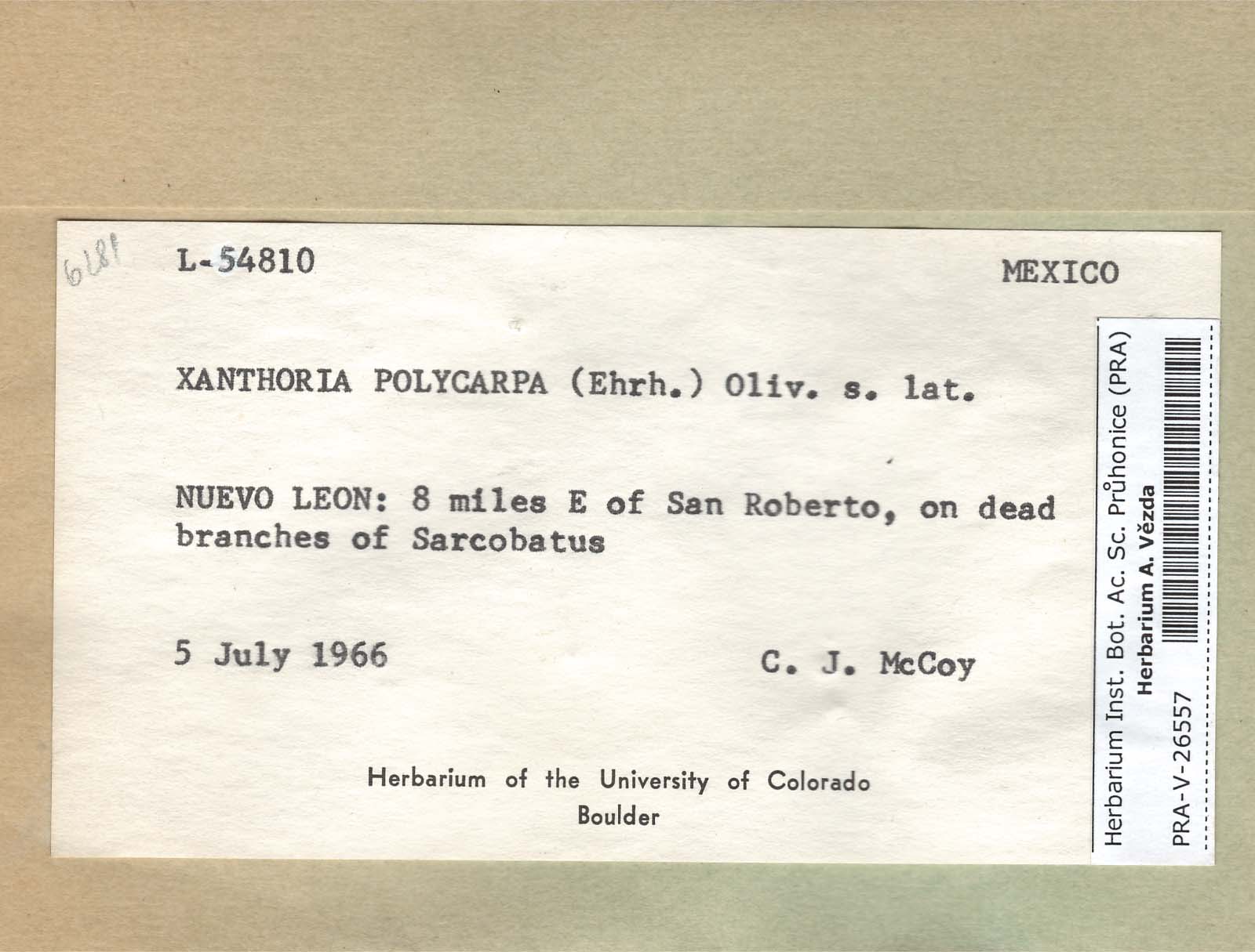 - Deposited in parcel no. 54 Mixodictyon, Xanthoria