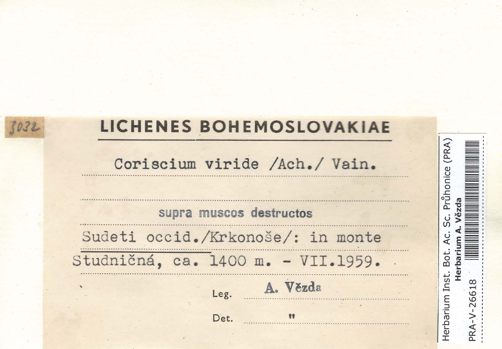 - Deposited in parcel no. 55 Basidiolichenes, Dictyonema