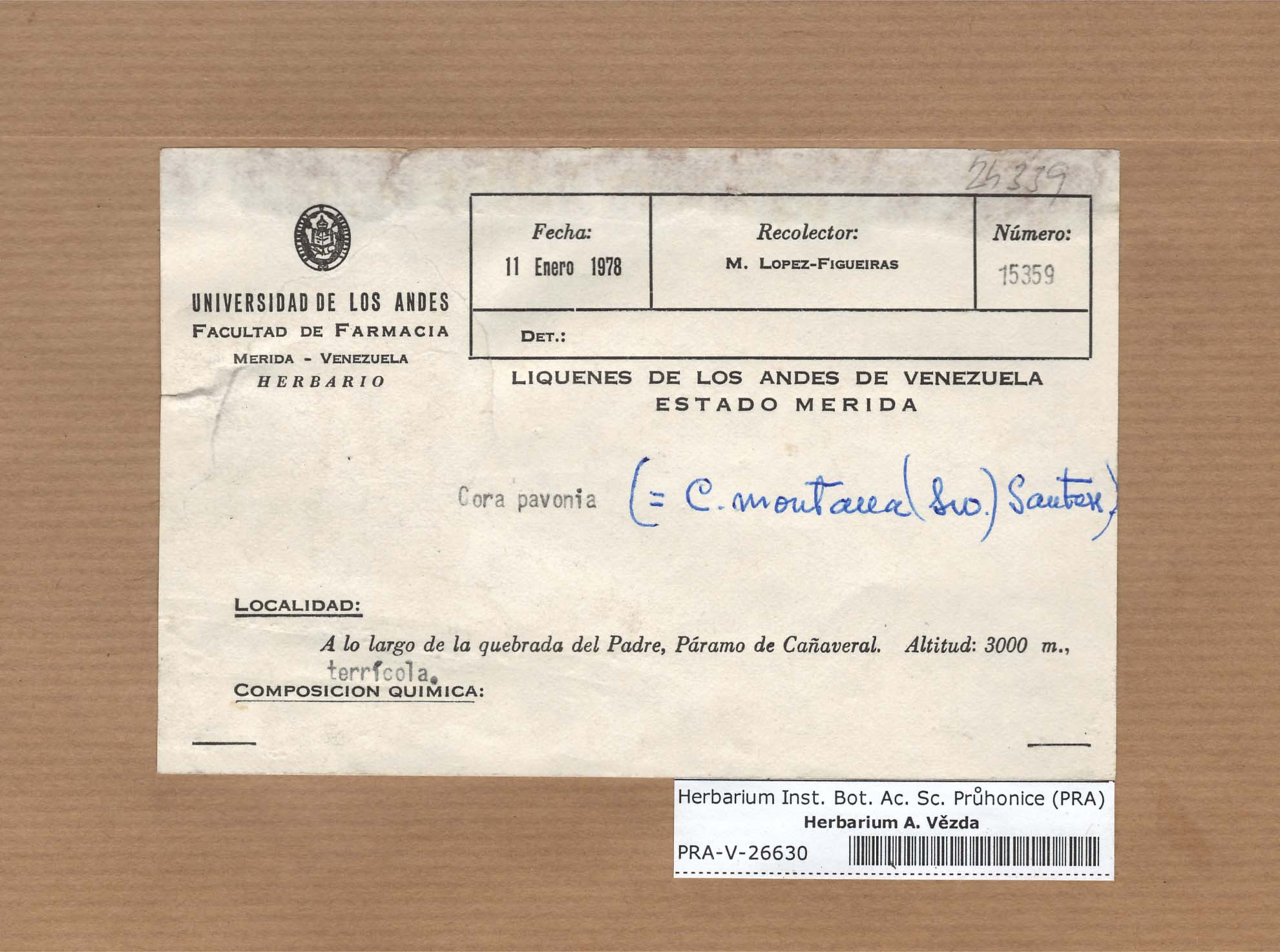 - Deposited in parcel no. 55 Basidiolichenes, Dictyonema