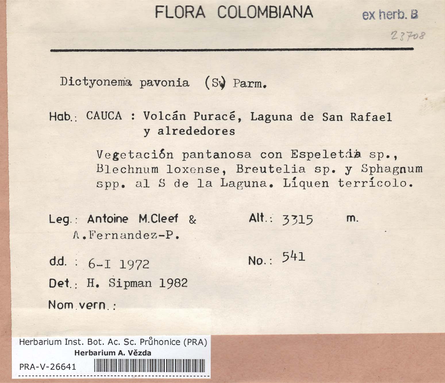- Deposited in parcel no. 55 Basidiolichenes, Dictyonema