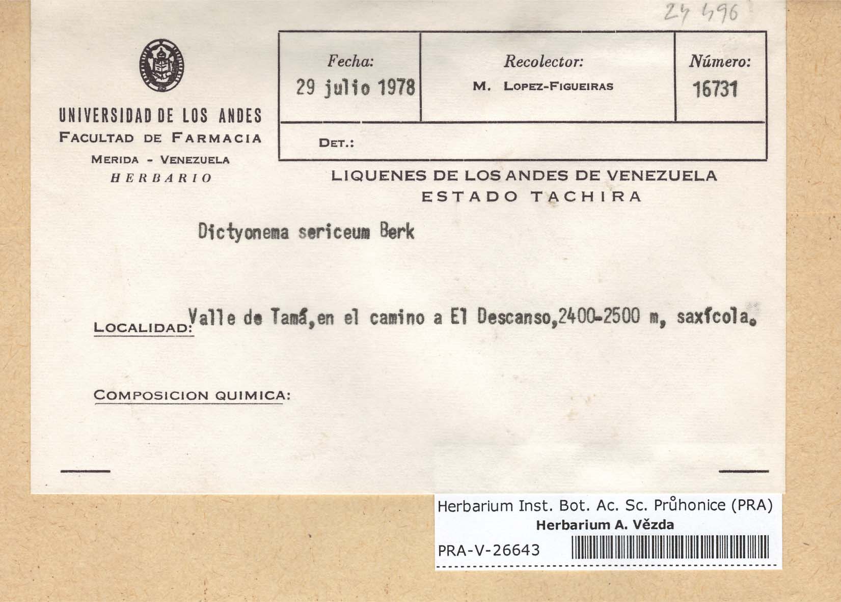 - Deposited in parcel no. 55 Basidiolichenes, Dictyonema