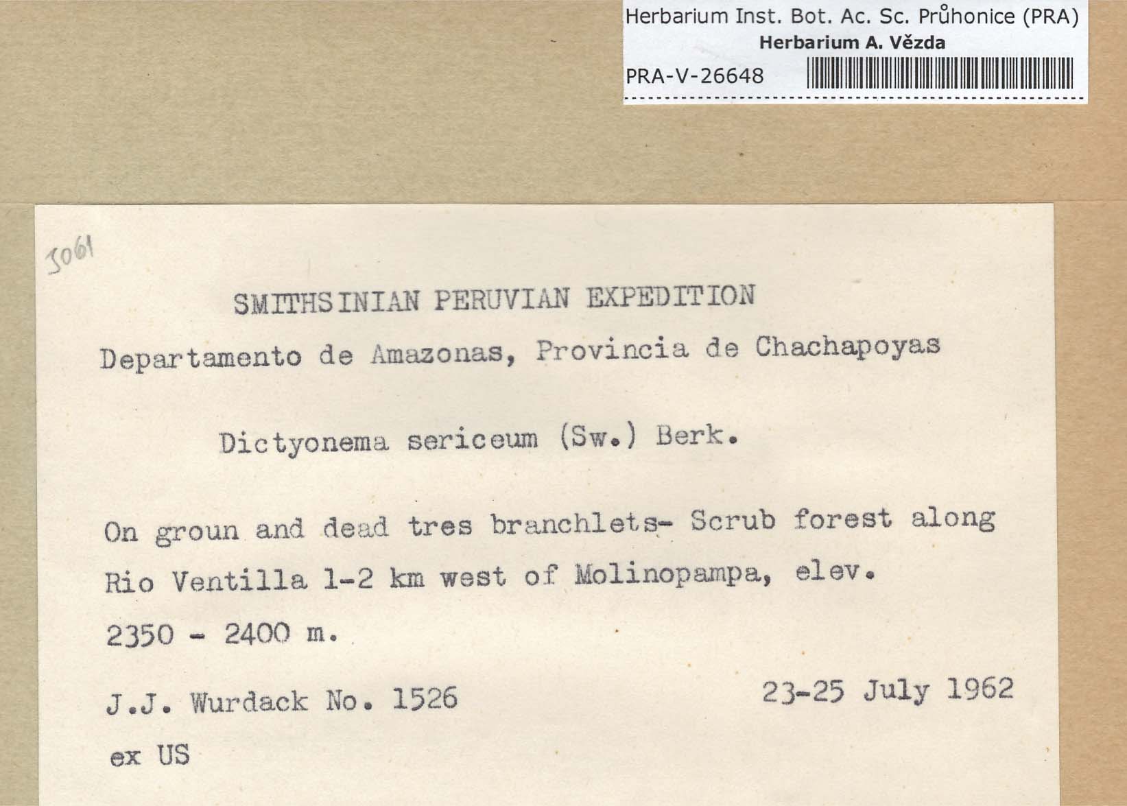 - Deposited in parcel no. 55 Basidiolichenes, Dictyonema