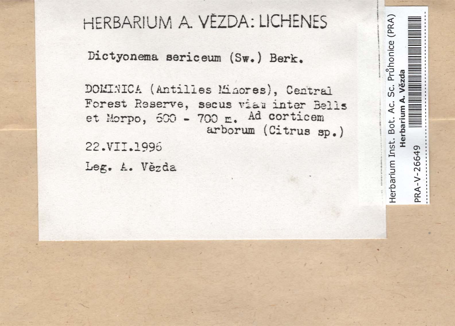 - Deposited in parcel no. 55 Basidiolichenes, Dictyonema