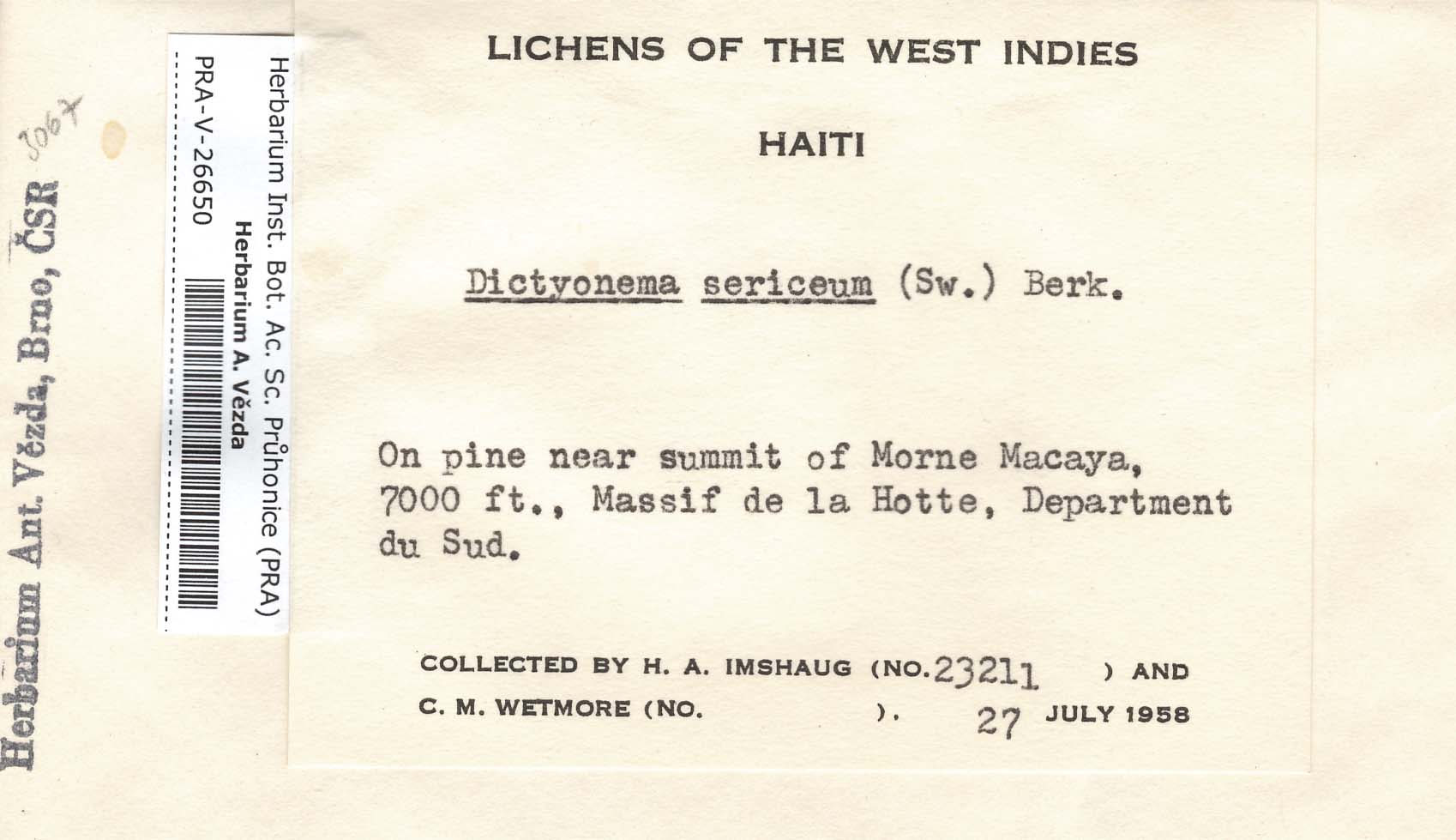 - Deposited in parcel no. 55 Basidiolichenes, Dictyonema