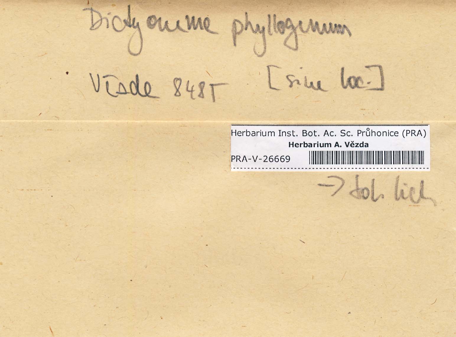 - Deposited in parcel Lichenes foliicoli 2