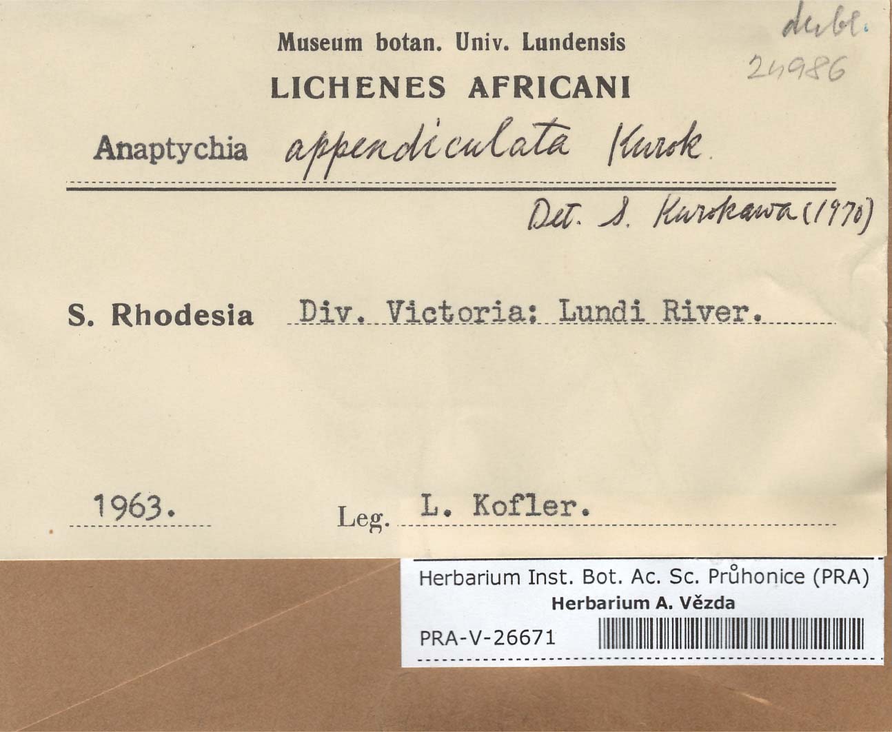 - Deposited in parcel no. 56 Tornabenia, Heterodermia, Anaptychia