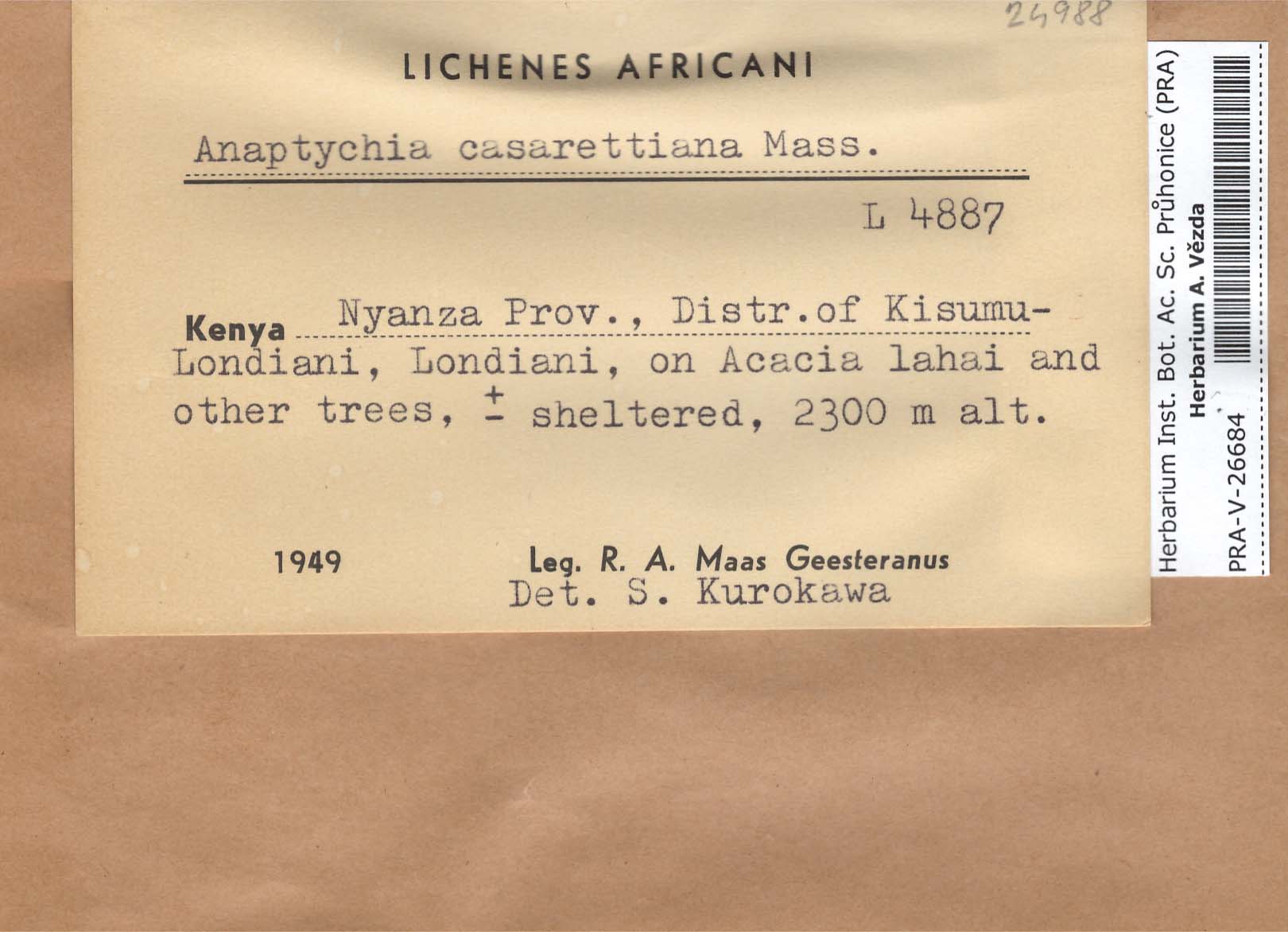 - Deposited in parcel no. 56 Tornabenia, Heterodermia, Anaptychia