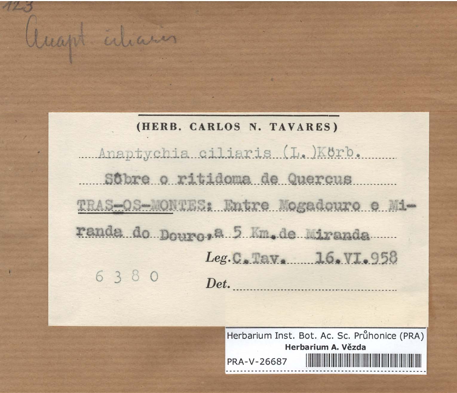- Deposited in parcel no. 56 Tornabenia, Heterodermia, Anaptychia