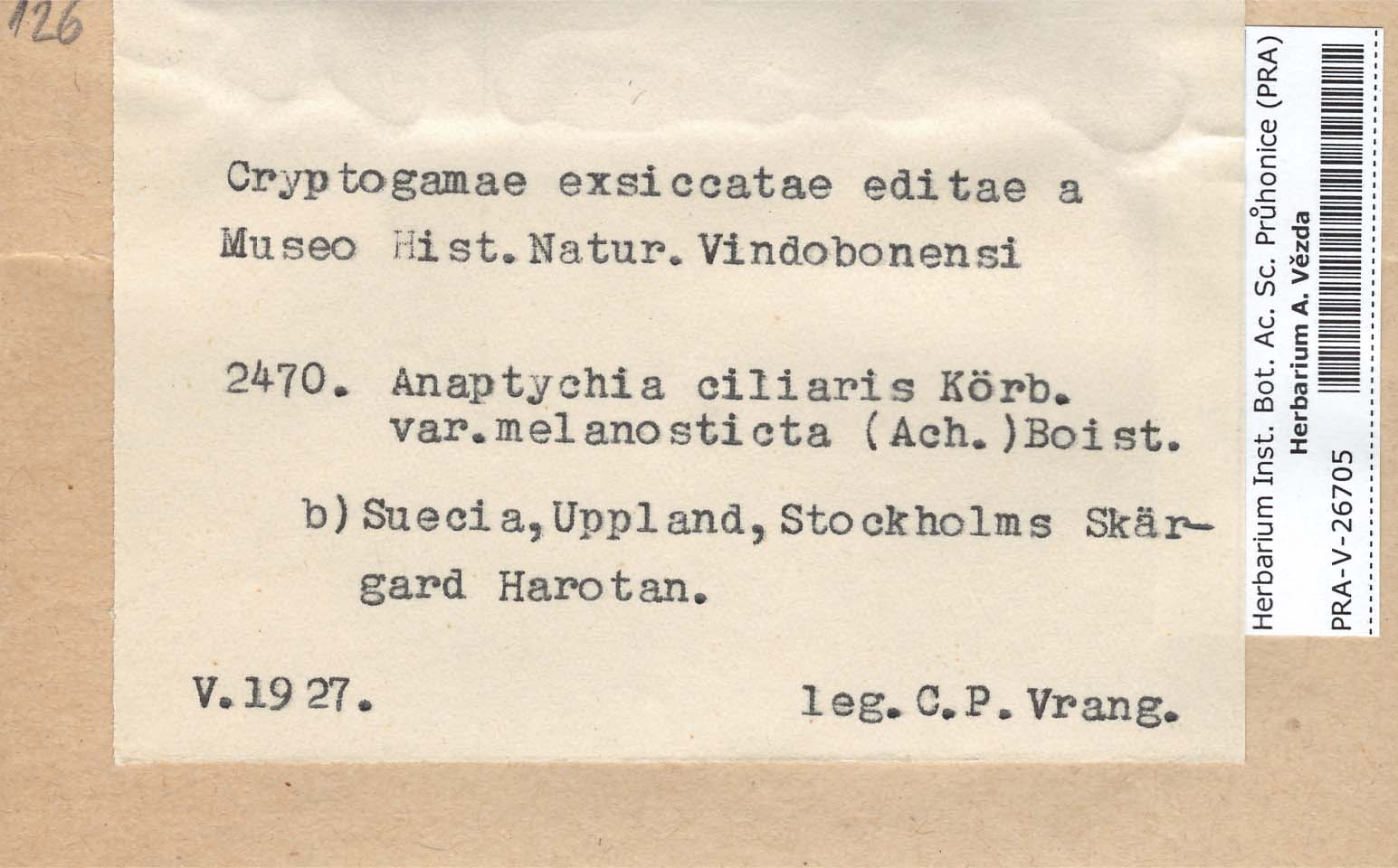 - Deposited in parcel no. 56 Tornabenia, Heterodermia, Anaptychia