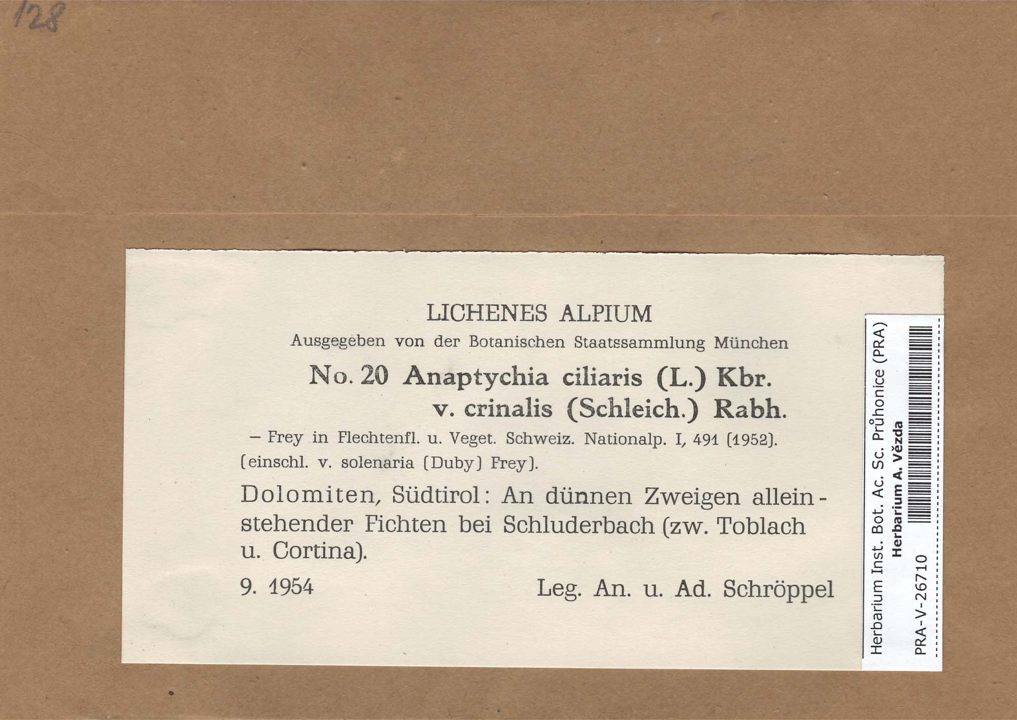 - Deposited in parcel no. 56 Tornabenia, Heterodermia, Anaptychia
