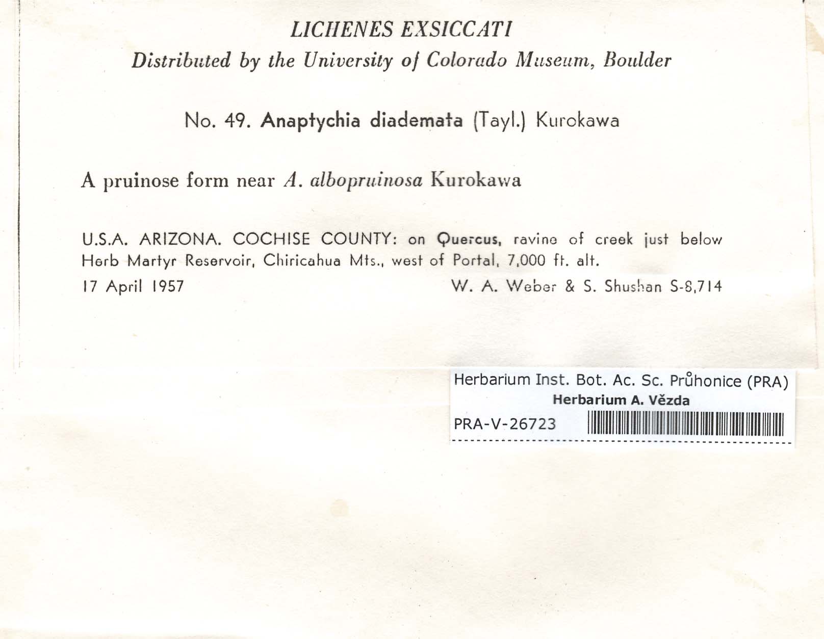 - Deposited in parcel no. 56 Tornabenia, Heterodermia, Anaptychia