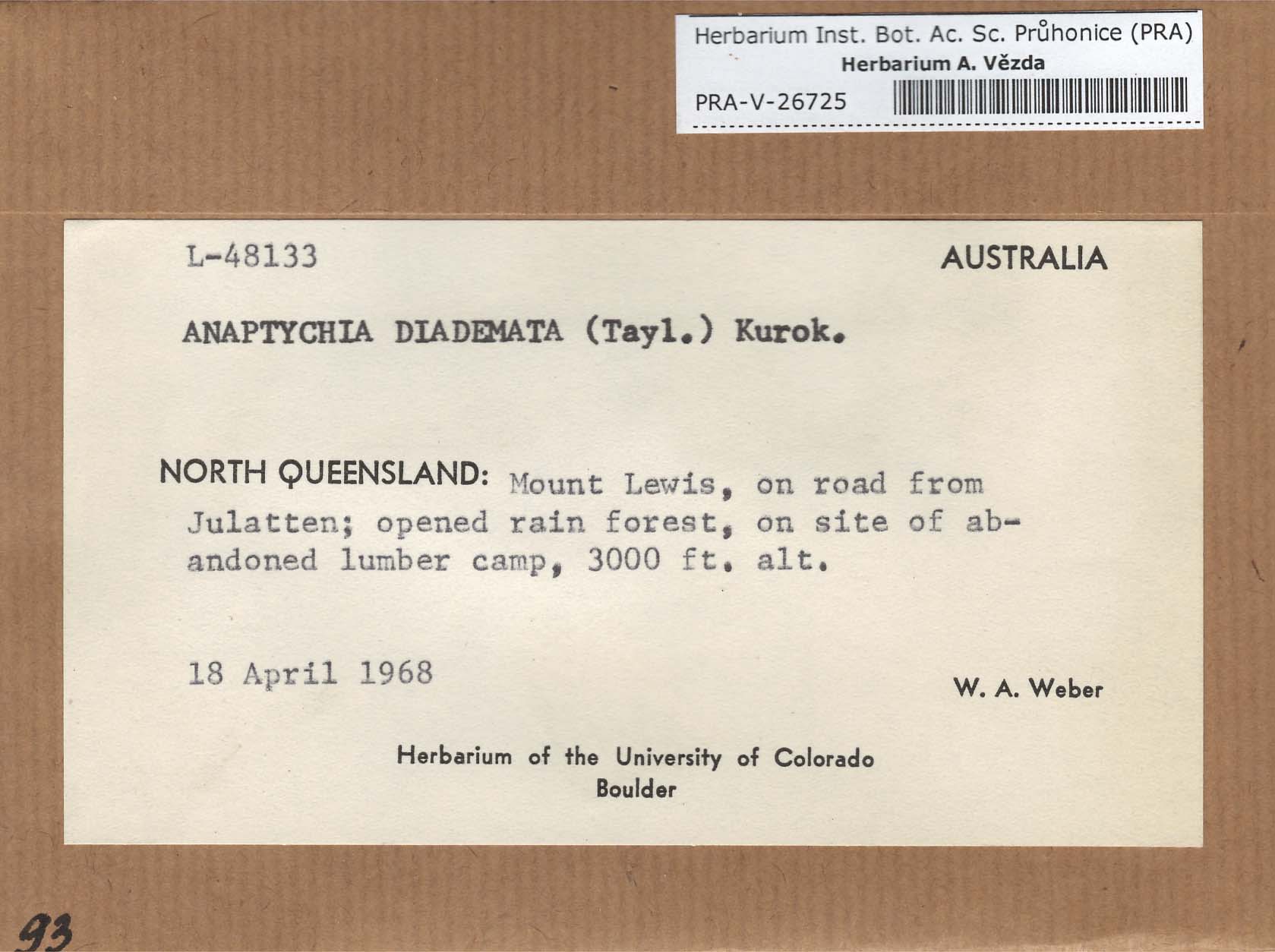 - Deposited in parcel no. 56 Tornabenia, Heterodermia, Anaptychia