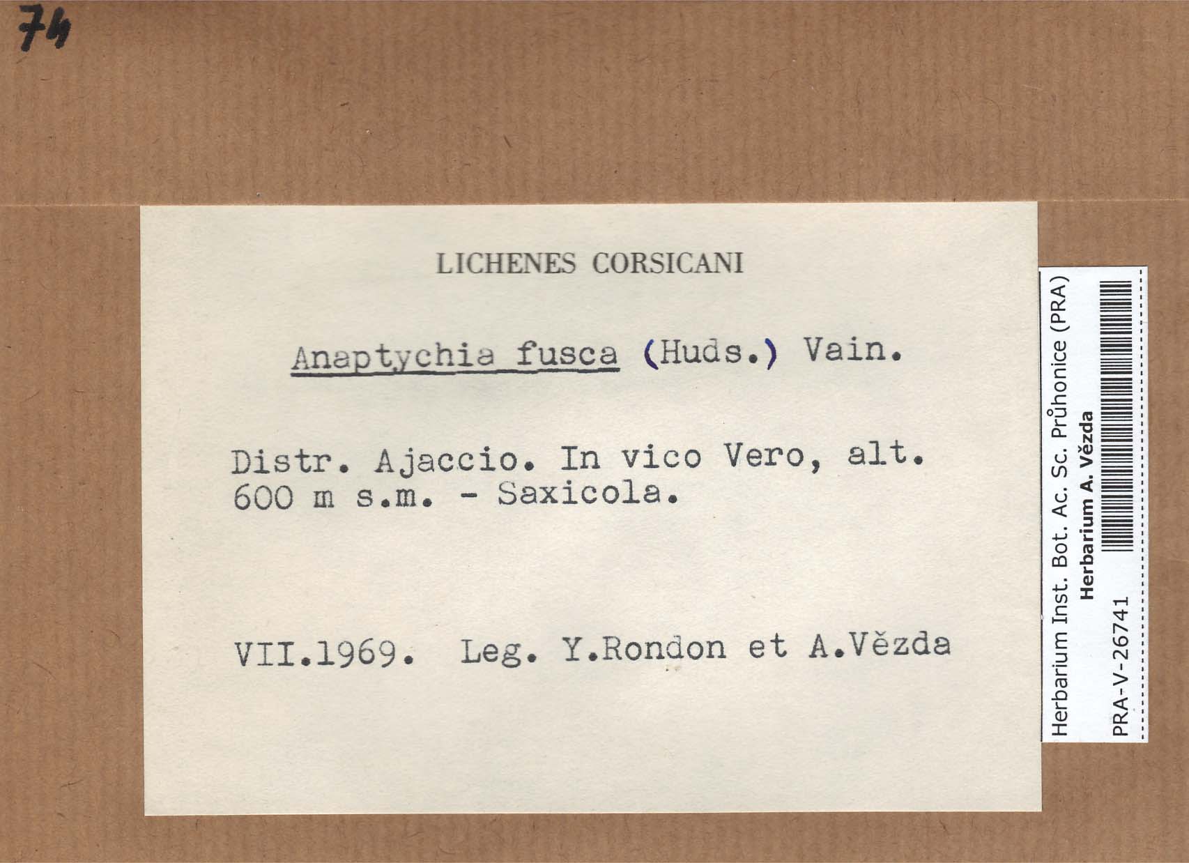 - Deposited in parcel no. 56 Tornabenia, Heterodermia, Anaptychia