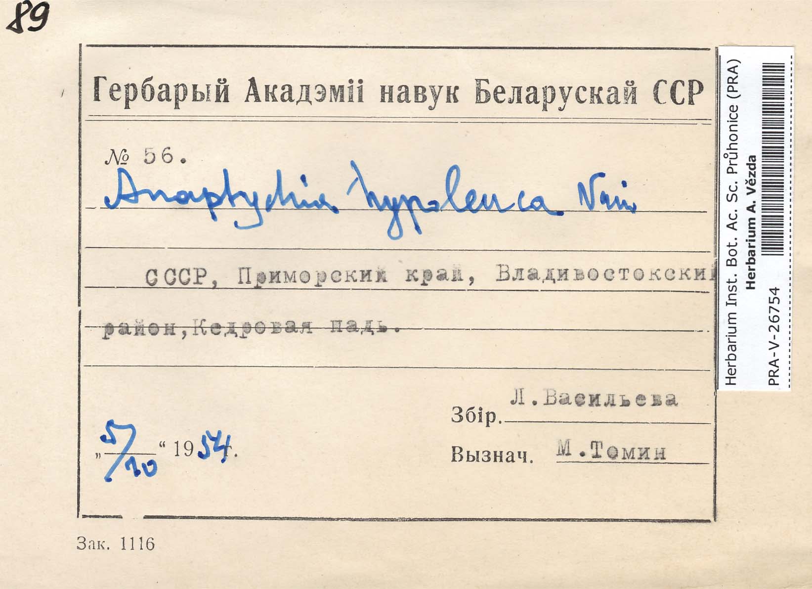 - Deposited in parcel no. 56 Tornabenia, Heterodermia, Anaptychia