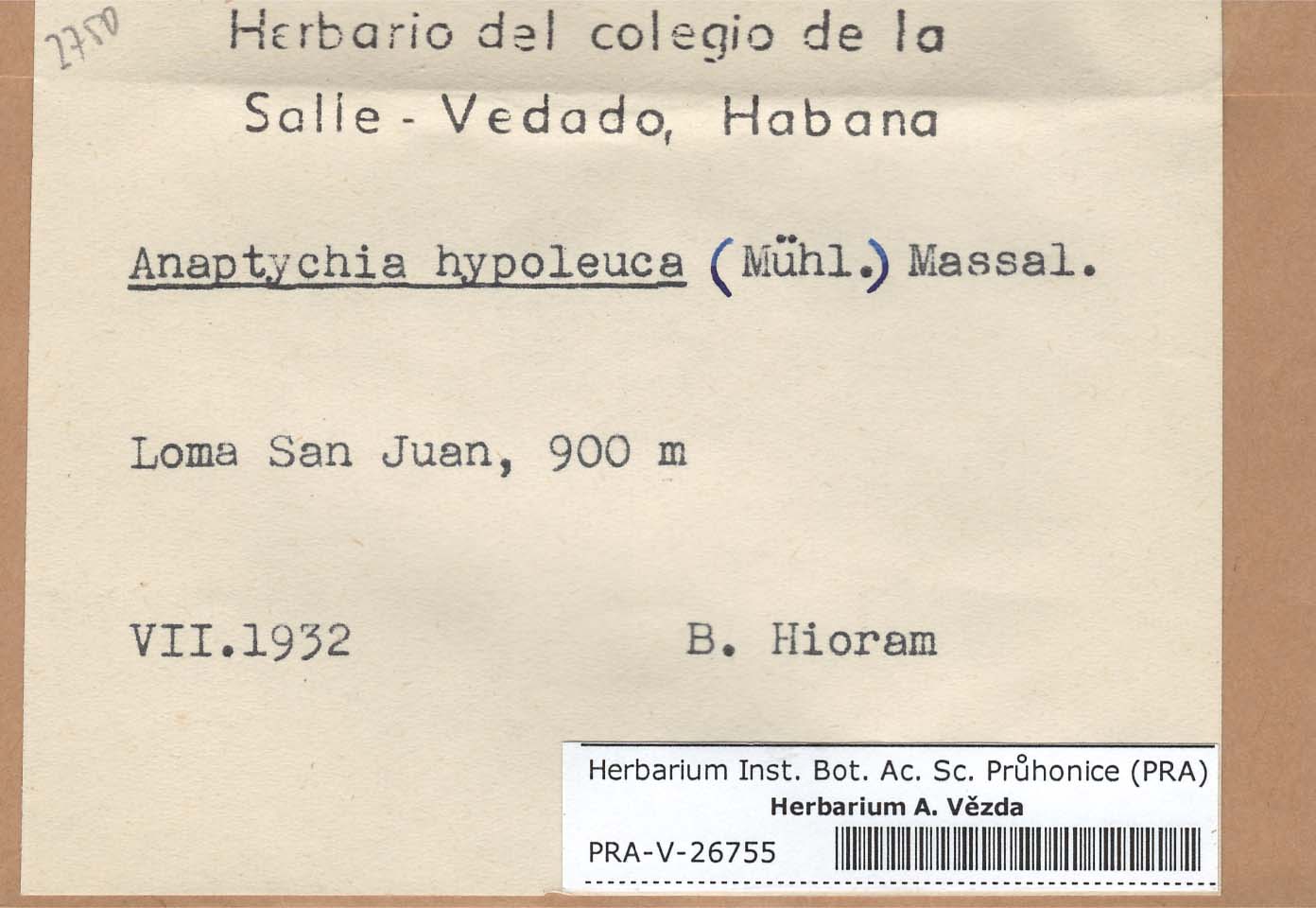 - Deposited in parcel no. 56 Tornabenia, Heterodermia, Anaptychia
