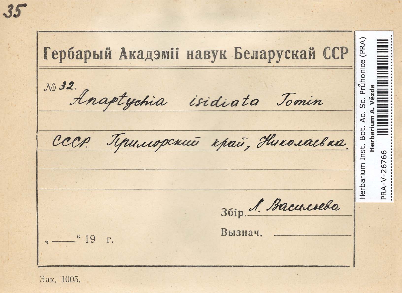 - Deposited in parcel no. 56 Tornabenia, Heterodermia, Anaptychia