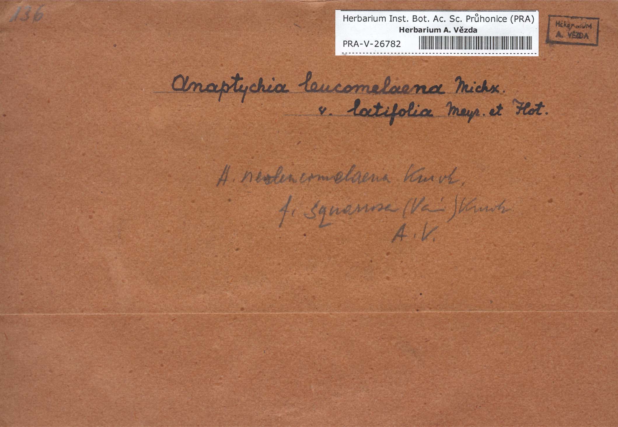 - Deposited in parcel no. 56 Tornabenia, Heterodermia, Anaptychia