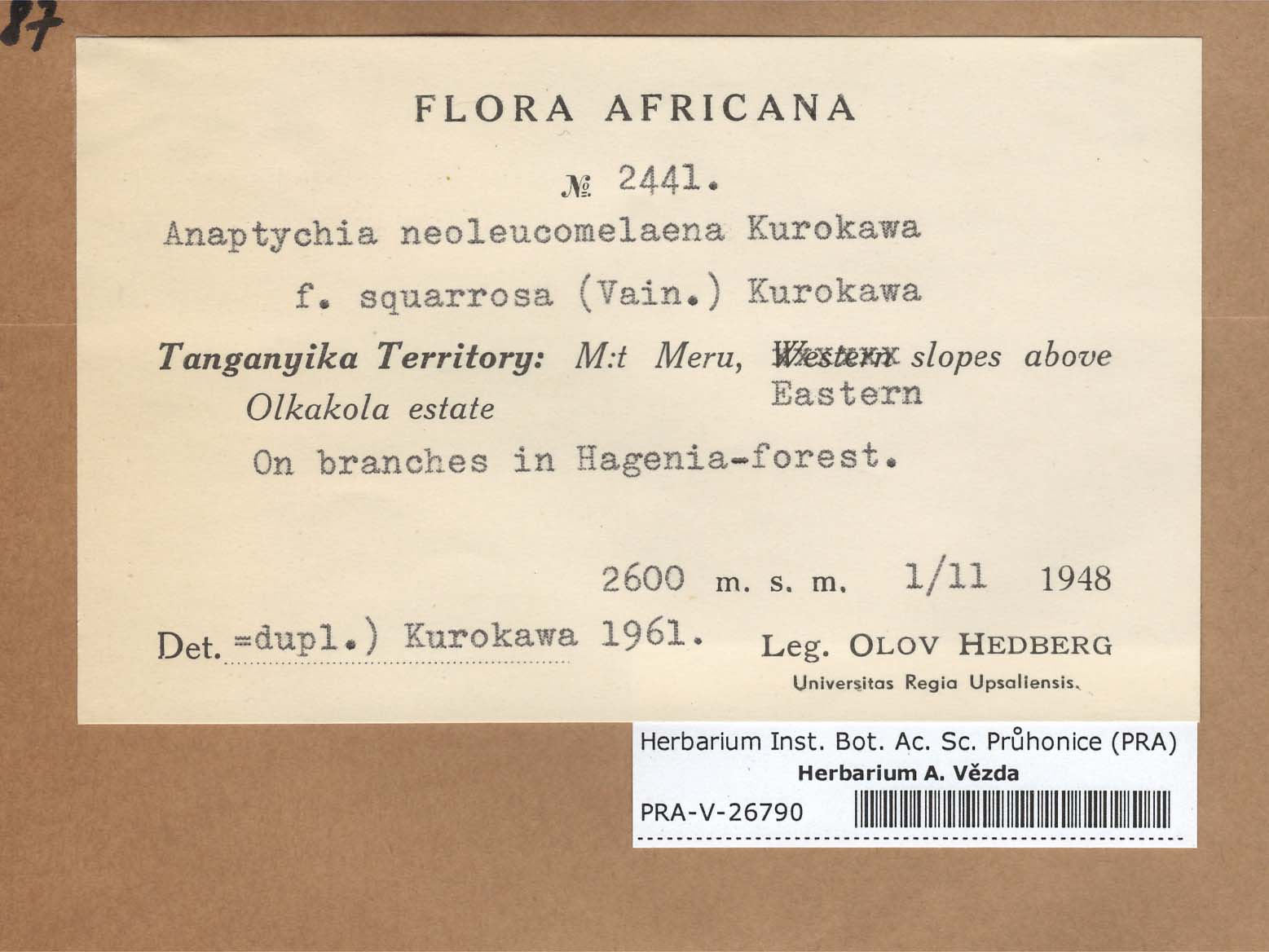- Deposited in parcel no. 56 Tornabenia, Heterodermia, Anaptychia