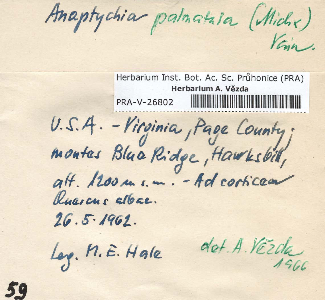- Deposited in parcel no. 56 Tornabenia, Heterodermia, Anaptychia