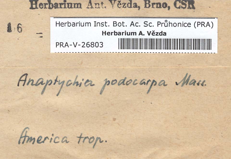 - Deposited in parcel no. 56 Tornabenia, Heterodermia, Anaptychia
