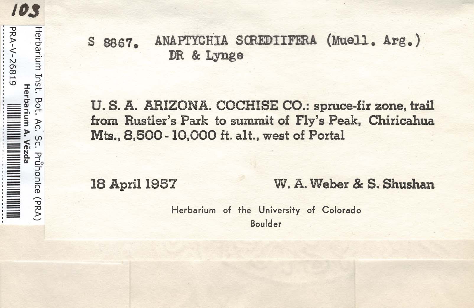 - Deposited in parcel no. 56 Tornabenia, Heterodermia, Anaptychia