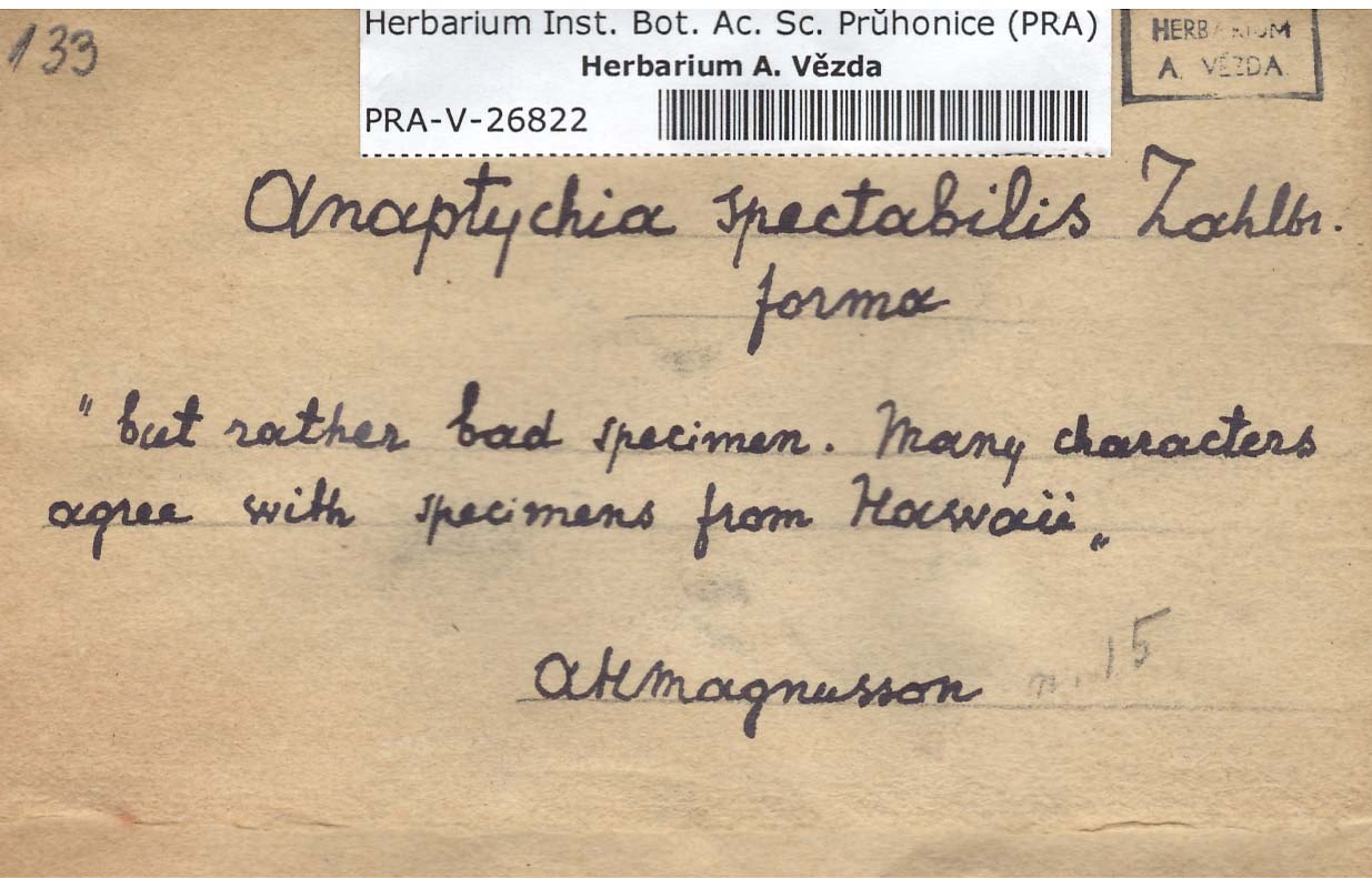 - Deposited in parcel no. 56 Tornabenia, Heterodermia, Anaptychia