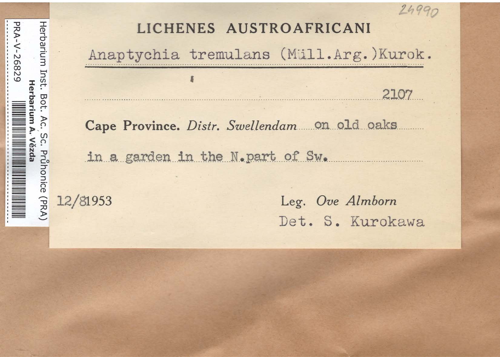 - Deposited in parcel no. 56 Tornabenia, Heterodermia, Anaptychia