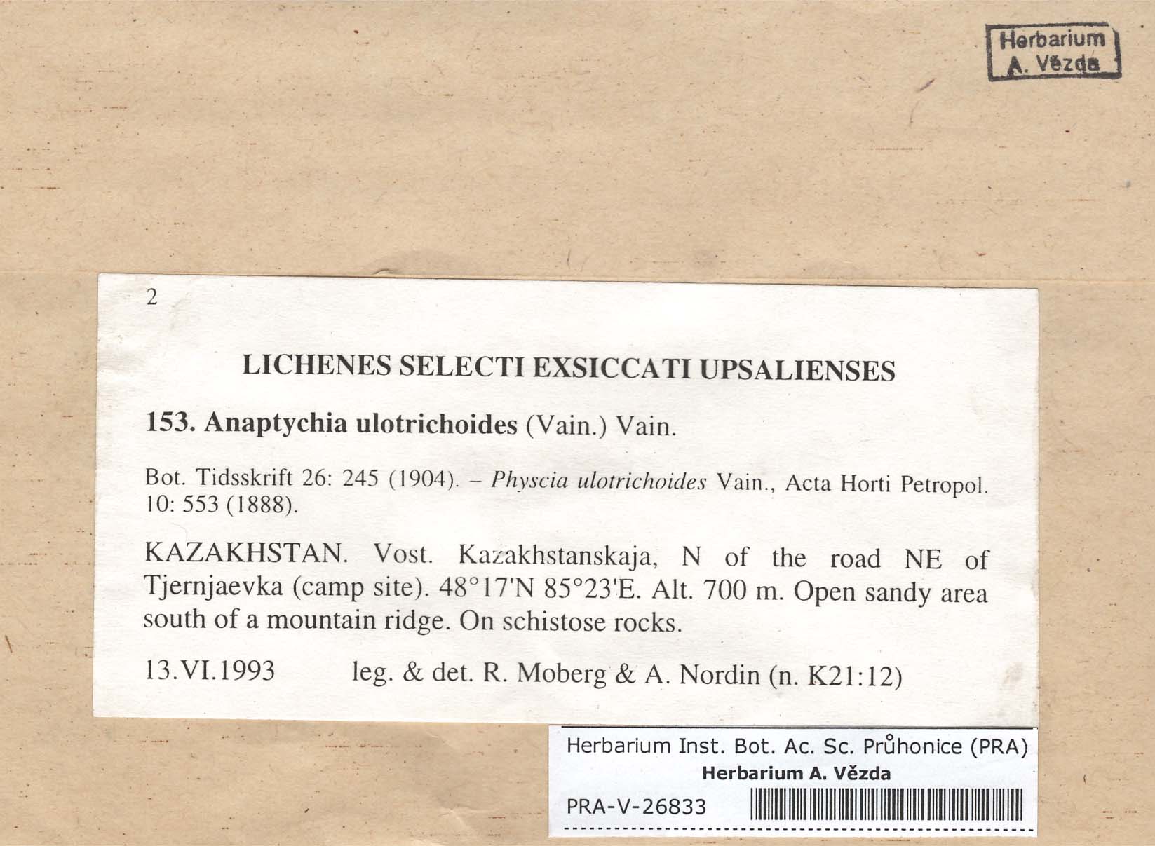 - Deposited in parcel no. 56 Tornabenia, Heterodermia, Anaptychia