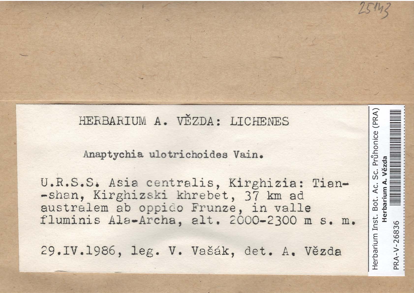 - Deposited in parcel no. 56 Tornabenia, Heterodermia, Anaptychia