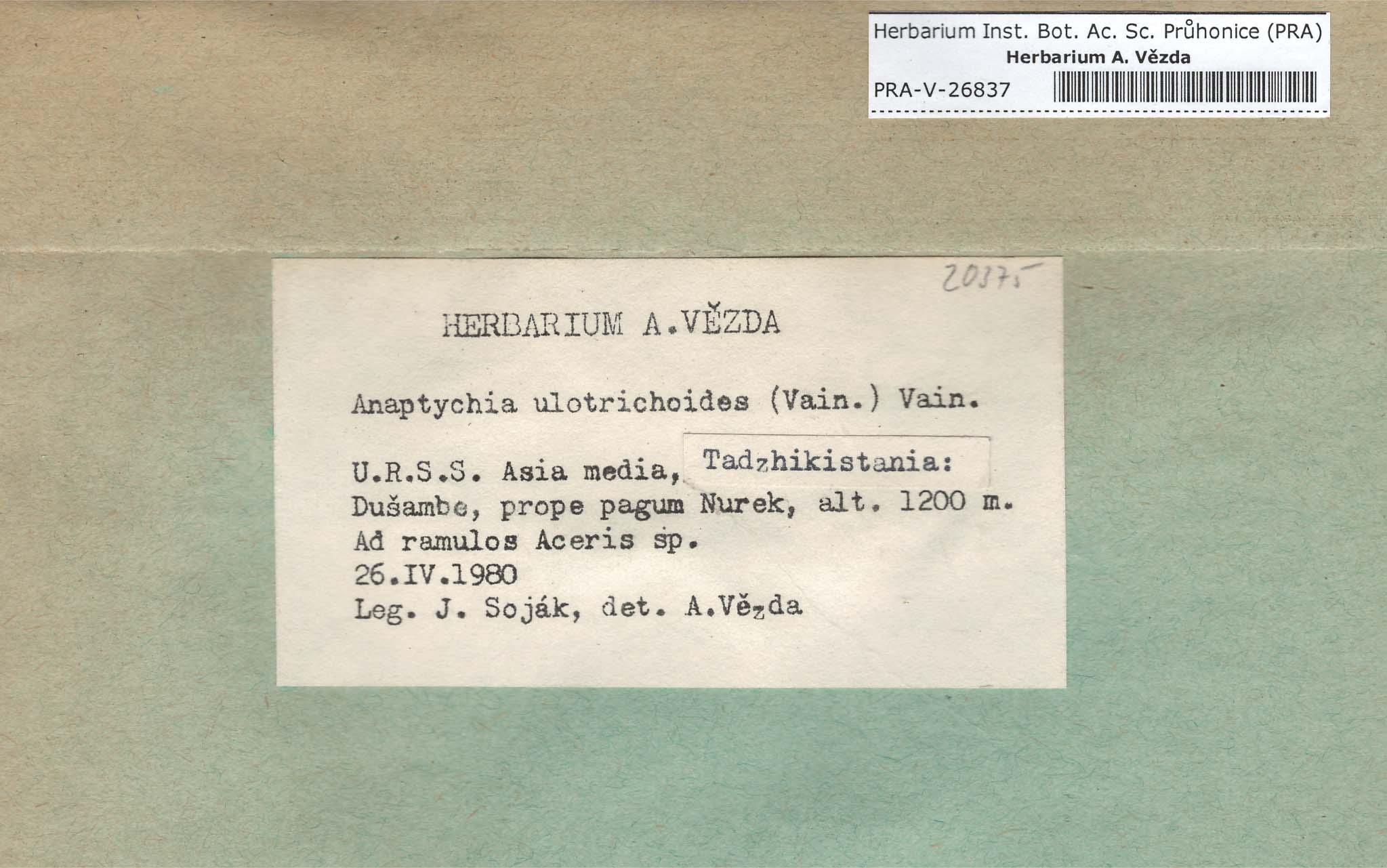 - Deposited in parcel no. 56 Tornabenia, Heterodermia, Anaptychia
