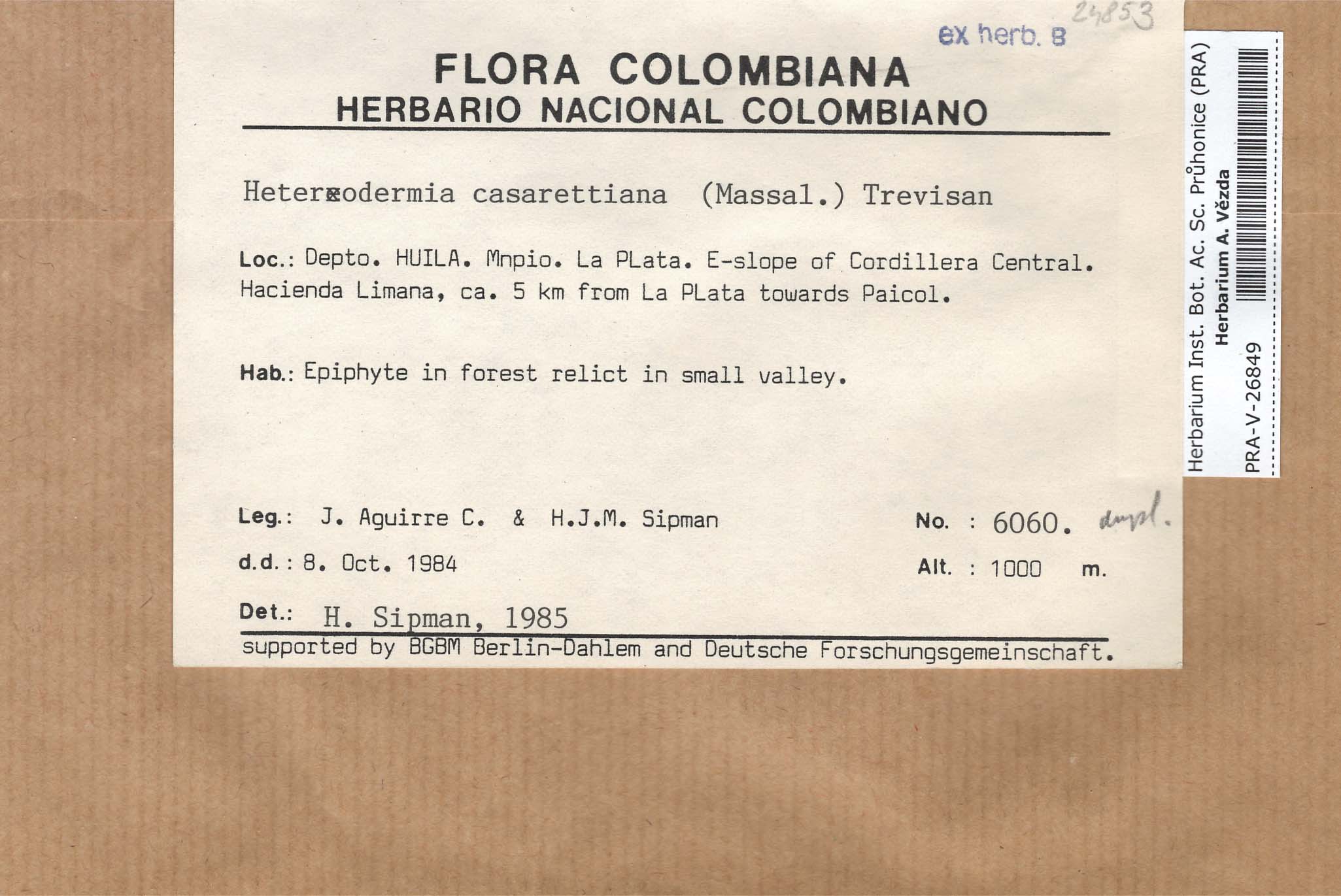 - Deposited in parcel no. 56 Tornabenia, Heterodermia, Anaptychia