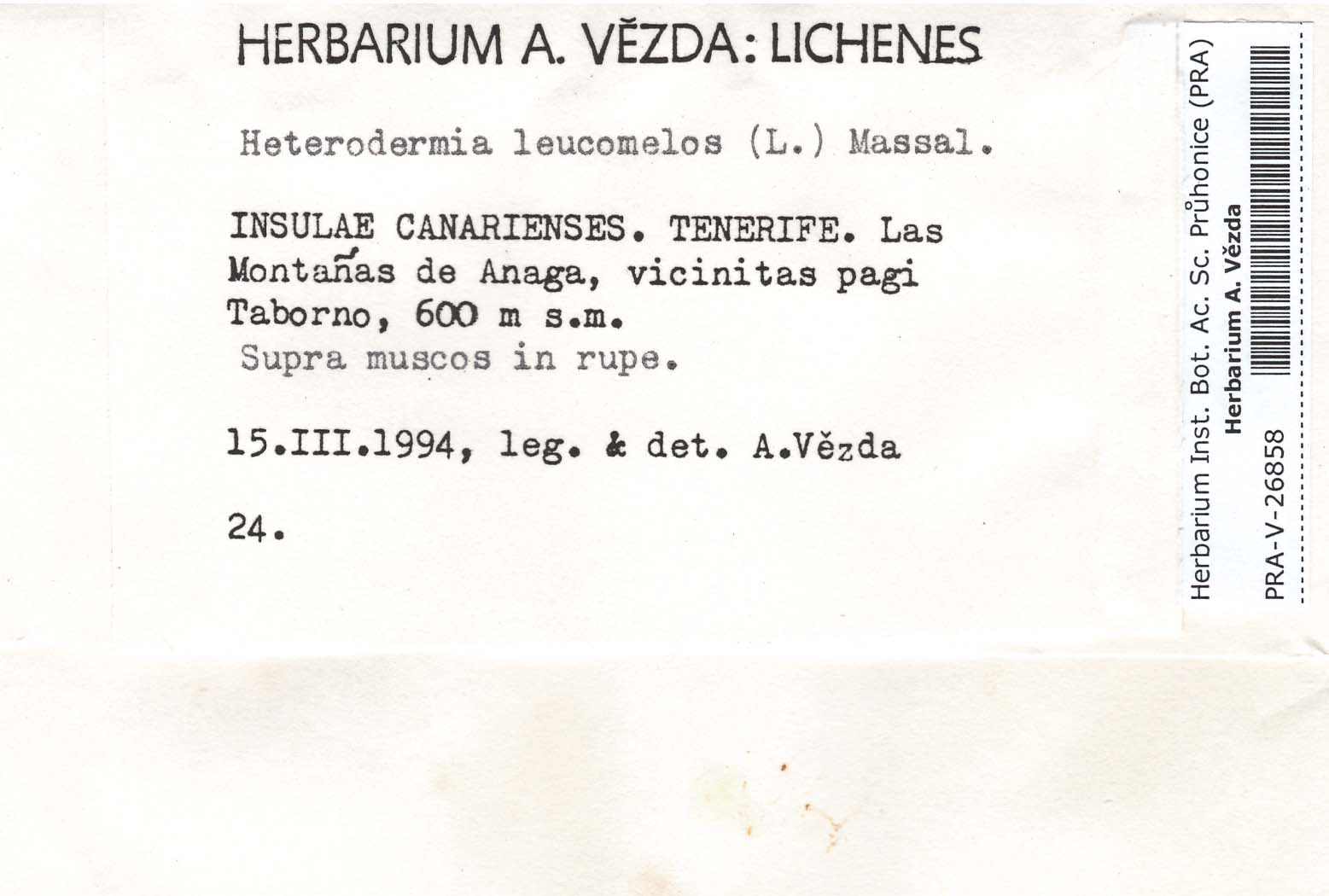 - Deposited in parcel no. 56 Tornabenia, Heterodermia, Anaptychia