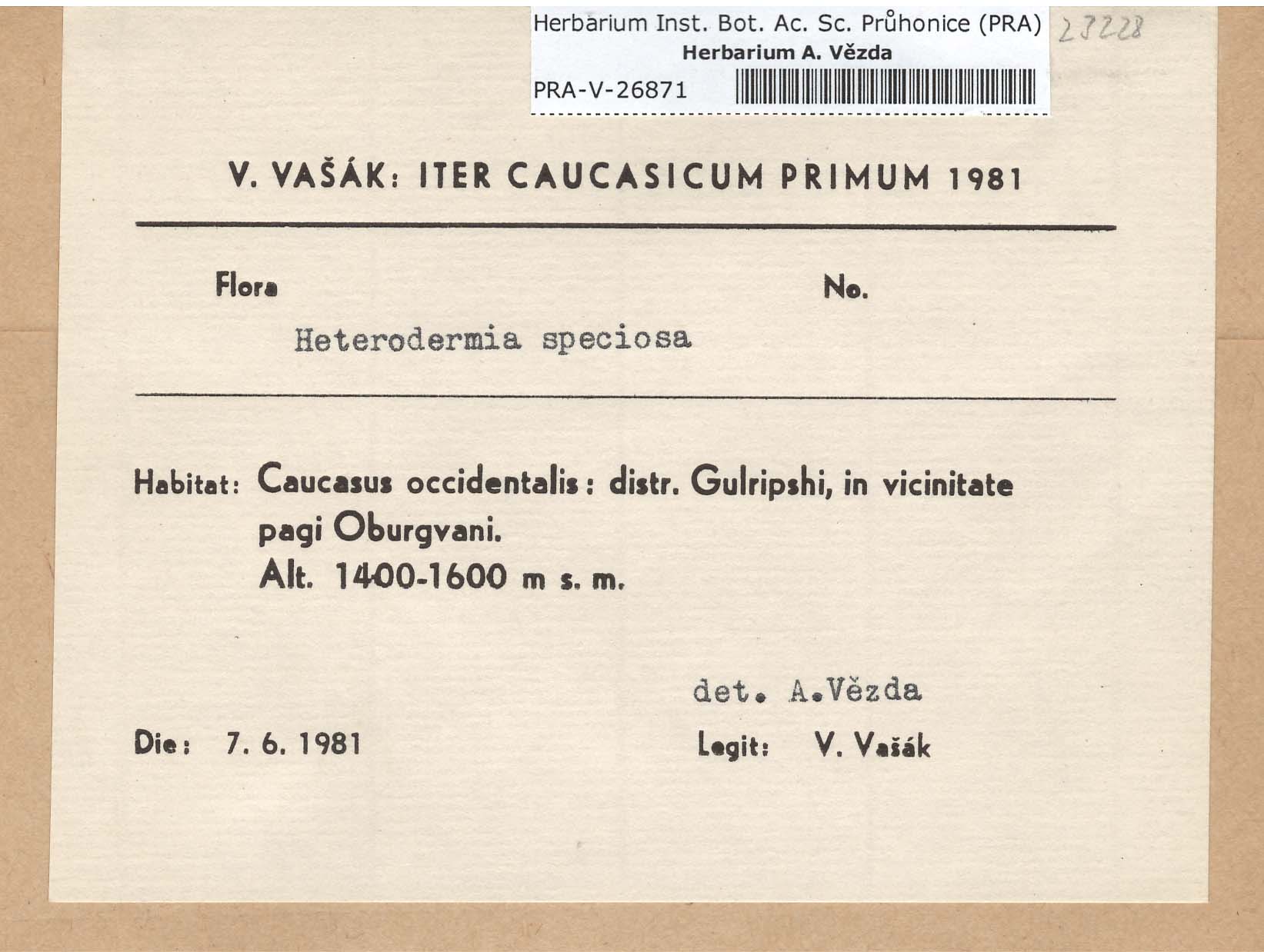 - Deposited in parcel no. 56 Tornabenia, Heterodermia, Anaptychia
