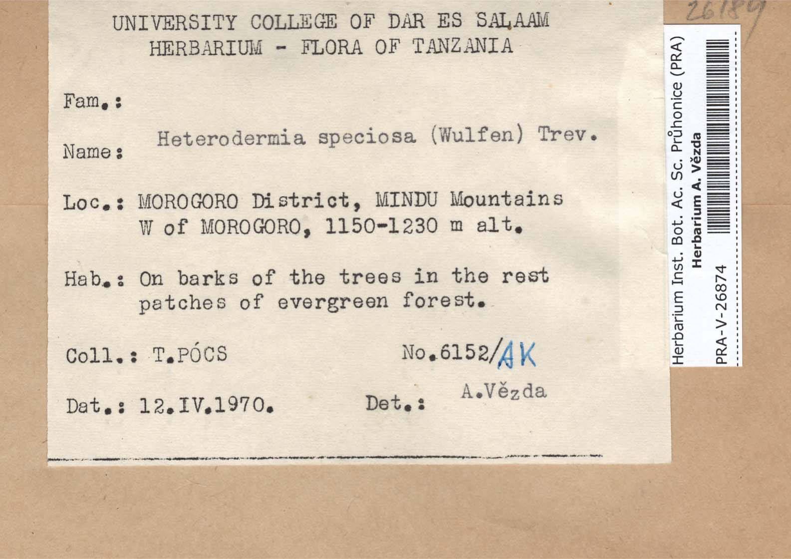 - Deposited in parcel no. 56 Tornabenia, Heterodermia, Anaptychia