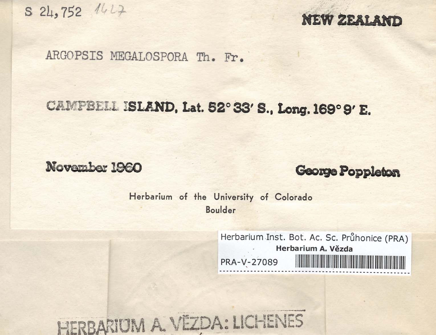 - Deposited in parcel no. 60 Argopsis,Baeomyces