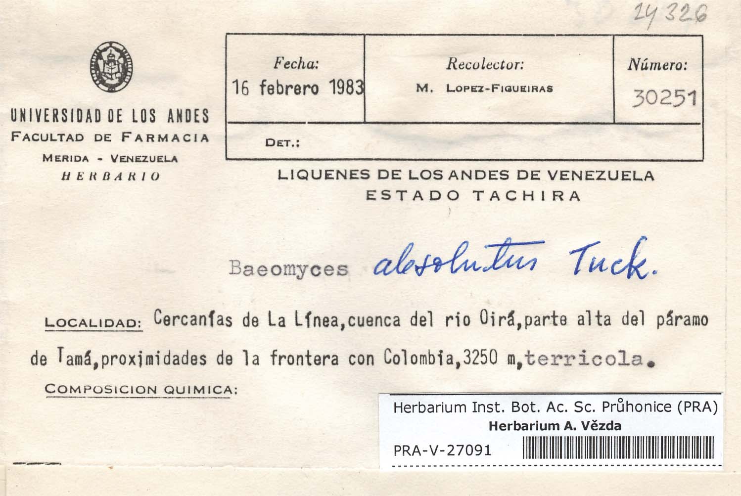 - Deposited in parcel no. 60 Argopsis,Baeomyces