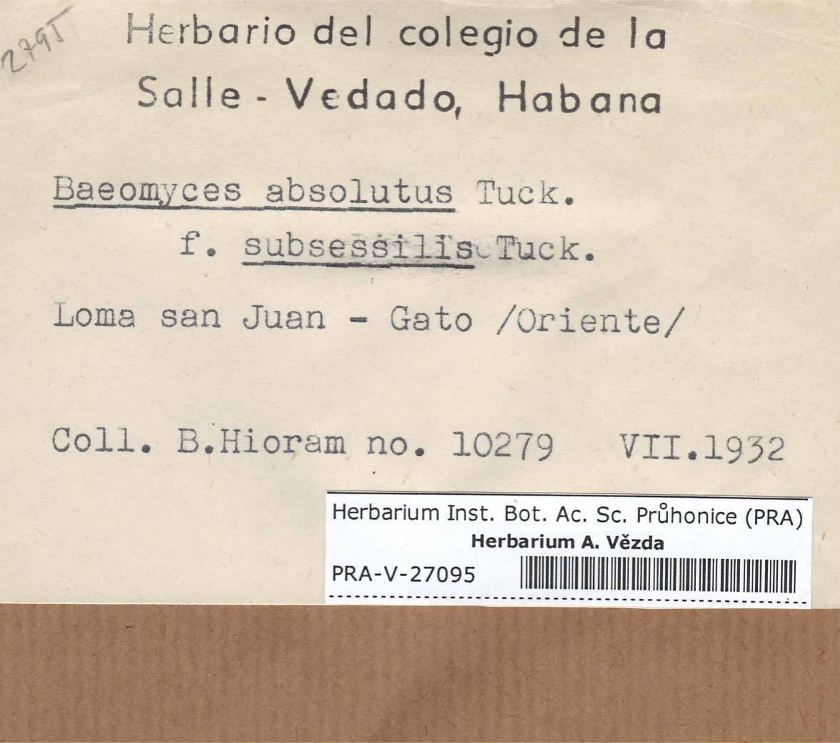 - Deposited in parcel no. 60 Argopsis,Baeomyces
